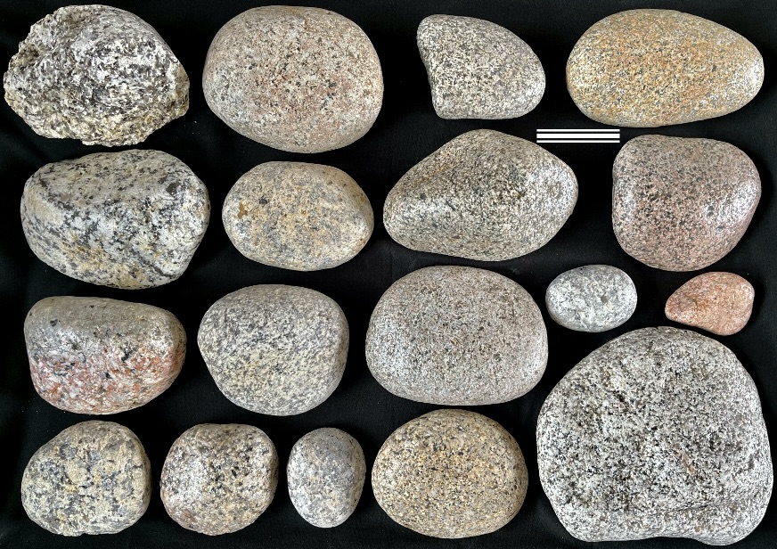 Figure 7 (iii). Horton beach diverse granitic (sl) erratics. Scale bar 5 cm.