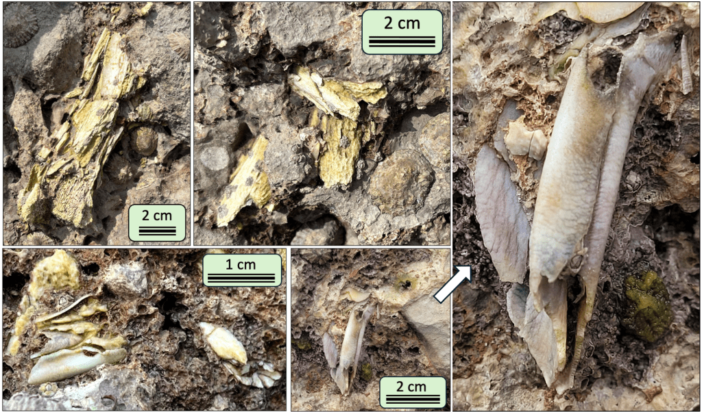 On Thursday 26th September 2024, at 11.05, I received an email from Professor Paul Griffiths, who asked if I knew anything about a small cluster of boulders in Pwll-du, largely covered with seaweed and composed of “hard conglomerate … not noticed on any other beach…”. At the time I was starting out on the Anglian glaciation of Gower and I really had nothing to offer about the boulders. I definitely had no idea that Paul’s findings would lead us to appeal to just that cold episode. Narrowly missing April Fool’s Day, Paul at last showed me his discoveries on 31st March, 2025 – a cluster of boulders of rock I had never seen before, and a fossil in different huge boulders close to the Needles promontory.