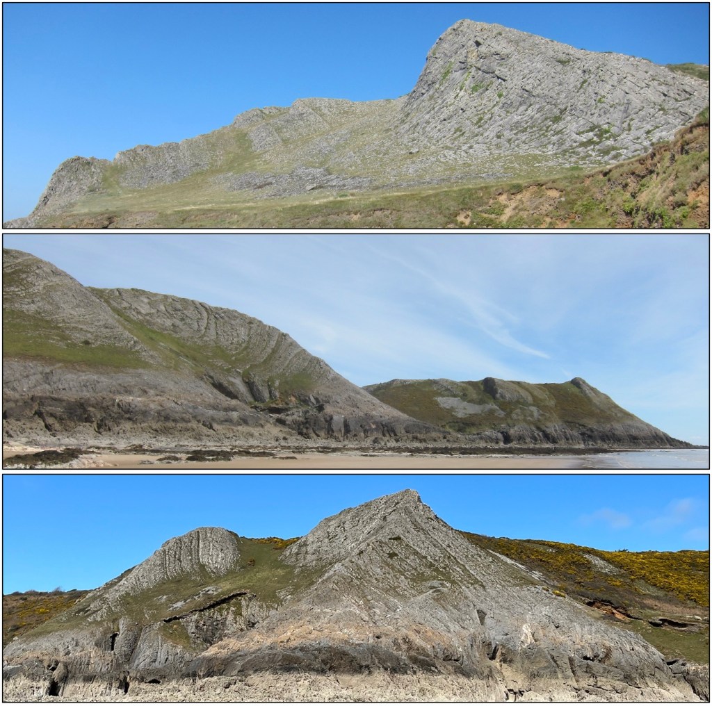 It is extremely difficult to appreciate fully how much rock is missing from above the surface we are so used to seeing today. In the book (Kokelaar 2012) I explain that we must be missing at least a kilometre thickness of rock that once overlay our Gower of today, due to uplift with erosion since some 60 million years ago. But let us focus here on what our modern limestone cliffs and platform of the peninsula tell us.